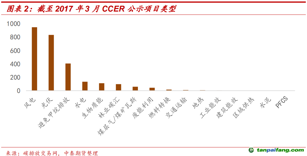 CCER的供應(yīng)量從2017年公示的項(xiàng)目類型來看,可再生能源類總量占比最高。目前,CCER方法學(xué)中減排額外性論證要求確認(rèn)項(xiàng)目的基準(zhǔn)情景難以商業(yè)化或獲得足夠的投資收益,從而借助銷售CCER實(shí)現(xiàn)商業(yè)可行性。這一點(diǎn)與進(jìn)入平價(jià)上網(wǎng)時(shí)代的可再生能源相背離,前期依靠補(bǔ)貼的時(shí)代結(jié)束也意味著其存在自給的收益。因此,風(fēng)電、光伏在內(nèi)的可再生能源項(xiàng)目是否獲簽存在著較大的不確定性。 內(nèi).容.來.自:中`國`碳#排*放*交*易^網(wǎng) t a np ai f an g.com