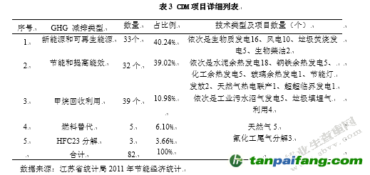 CDM項(xiàng)目的項(xiàng)目名稱、批準(zhǔn)時(shí)間、減排類型、