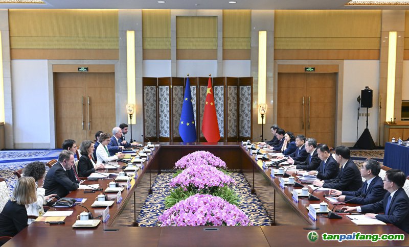 7月14日下午,中共中央政治局常委、國務(wù)院副總理丁薛祥在北京同歐盟委員會(huì)執(zhí)行副主席里貝拉舉行第六次中歐環(huán)境與氣候高層對(duì)話。新華社記者 張領(lǐng) 攝 本`文@內(nèi)/容/來/自:中-國^碳-排-放^*交*易^網(wǎng)-tan pai fang. com