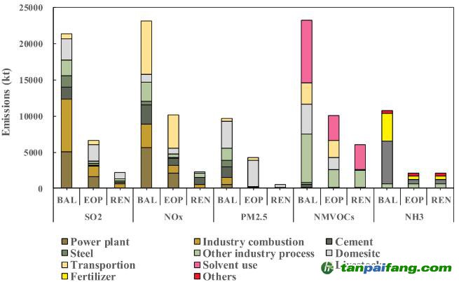 - 對(duì)比BAL和REM:協(xié)同使用末端治理技術(shù)與可再生能源的減排潛力