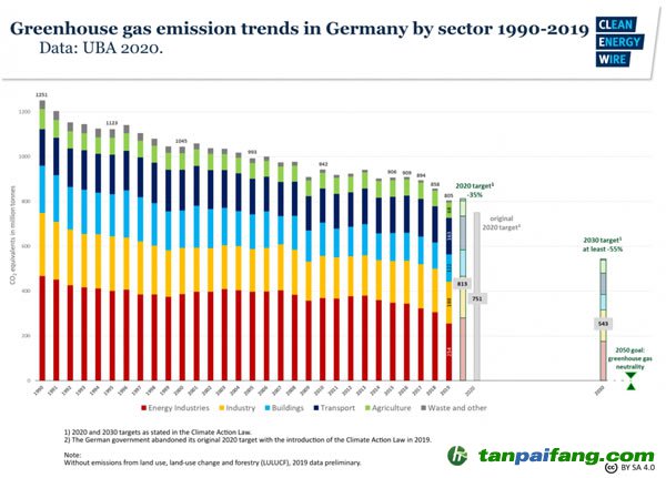 德國(guó)的應(yīng)對(duì)氣候變化的目標(biāo)要求2020年排放量比1990年減少40%,減至 7.5億噸二氧化碳當(dāng)量。根據(jù)德國(guó)官方發(fā)布的數(shù)據(jù),2019年德國(guó)的二氧化碳排放量約為8.05億噸,較上年下降6.3%,為2009年以來的最大降幅。與1990年相比,2019年排放量減少了35.7%。根據(jù)去年的減排趨勢(shì),特別是新型冠狀病毒在德國(guó)和其他地方的爆發(fā)導(dǎo)致工業(yè)生產(chǎn)和運(yùn)輸放緩,德國(guó)達(dá)到甚至超過40%的目標(biāo)非??赡?。 本+文+內(nèi).容.來.自:中`國(guó)`碳`排*放*交*易^網(wǎng) t a np ai fan g.com