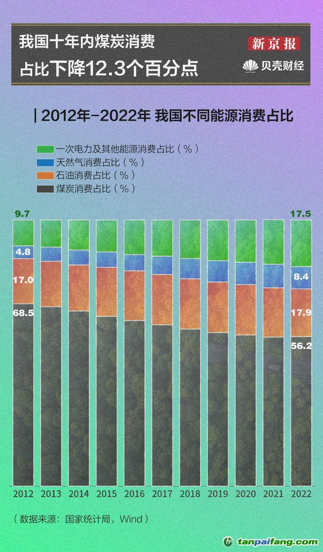 清潔能源將逐步取代煤炭,成為人們生活生產(chǎn)的新增能源消費(fèi)主力。2022年,天然氣、水電、核電、風(fēng)電、太陽能(6.550, 0.00, 0.00%)發(fā)電等清潔能源消費(fèi)占比達(dá)25.9%,相較2013年提高10.4%。 本`文@內(nèi)-容-來-自;中_國_碳排0放_交-易=網(wǎng) t an pa ifa ng . c om