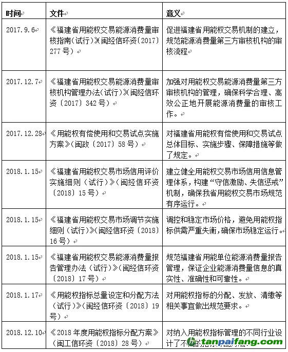 表1.福建省用能權(quán)市場政策支持文件