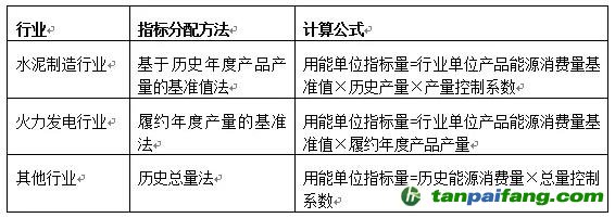 表2.福建省用能權(quán)市場各行業(yè)指標(biāo)分配方法