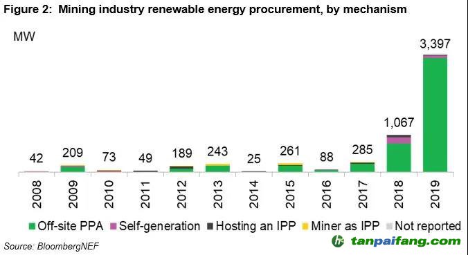 價格通過長期購電協議PPA獲得清潔能源。甚至,礦企還可以通過在運營現場安裝可再生能源為企業(yè)提供電力,節(jié)省總成本。