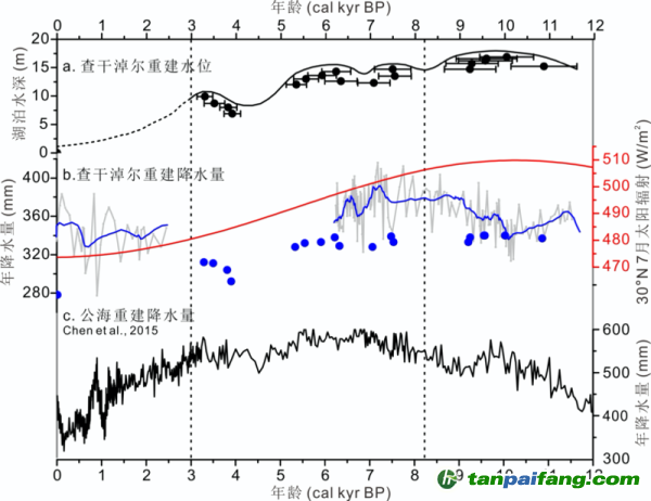 圖2.東亞夏季風(fēng)邊緣區(qū)查干淖爾流域1.2萬年以來年降水量變化重建結(jié)果