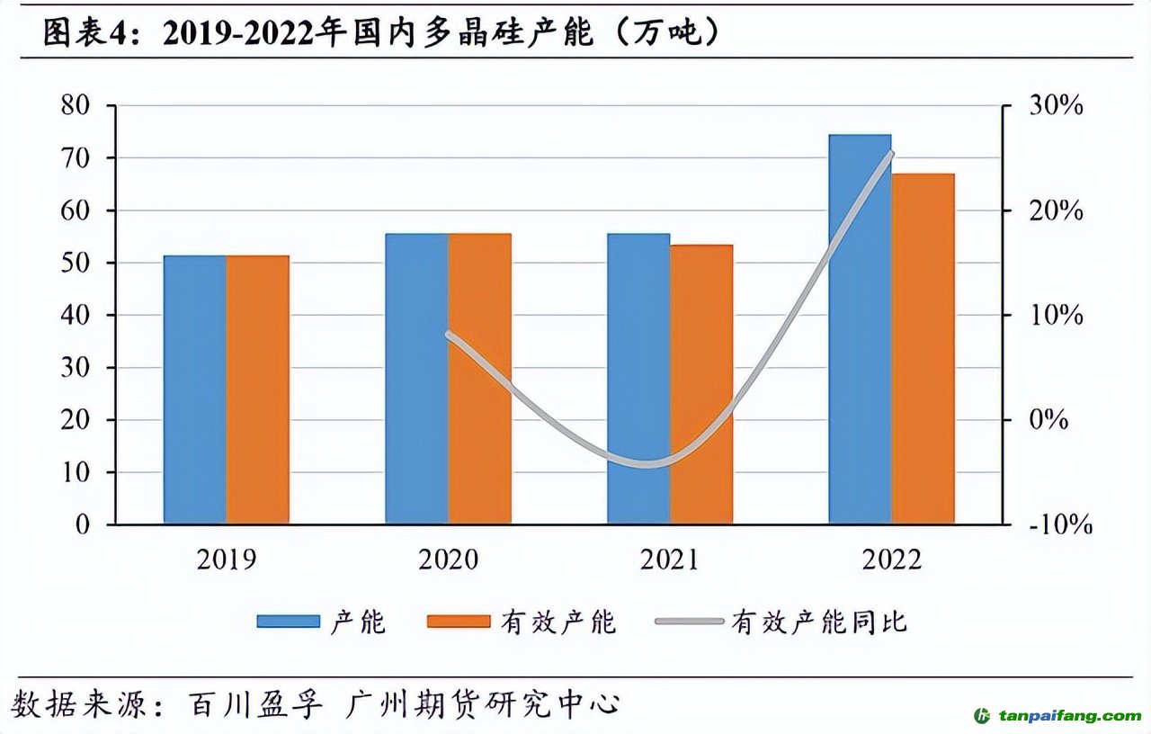 首先,在硅料環(huán)節(jié),目前中國是全球多晶硅產(chǎn)能與產(chǎn)量的第一大國。據(jù)廣州期貨研究中心數(shù)據(jù),截止2022年3月,我國多晶硅產(chǎn)能有74.55萬噸,其中有效產(chǎn)能為67.1萬噸,有效產(chǎn)能同比整體上是不斷增加的,其中2022年同比達25.42%。 內(nèi)/容/來/自:中-國-碳-排-放*交…易-網(wǎng)-tan pai fang . com