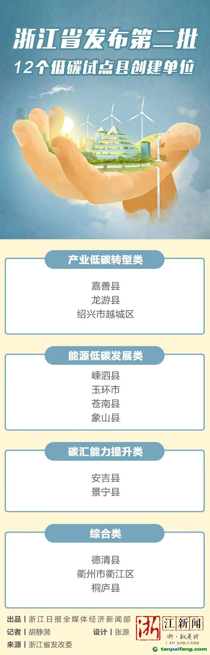 11月7日,記者從浙江省發(fā)展改革委獲悉,為打造縣域綠色低碳發(fā)展樣板,浙江省發(fā)布第二批低碳試點(diǎn)縣創(chuàng)建單位名單。在去年第一批溫州樂清市、紹興上虞區(qū)、臺州路橋區(qū)等11個(gè)低碳試點(diǎn)縣創(chuàng)建單位的基礎(chǔ)上,第二批共確定12個(gè)創(chuàng)建單位。 本文+內(nèi)-容-來-自;中^國_碳+排.放_交^易=網(wǎng) t a n pa ifa ng .c om