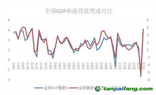 圖:全球GDP增速和碳排放增速對比