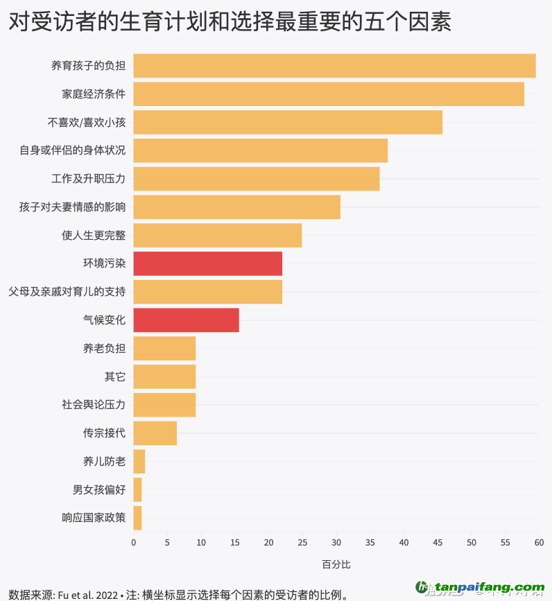 氣候變化并非是影響中國年輕人生育選擇的首要因素。超過一半的受訪者認為育兒時間、資源以及家庭收入是決定他們是否要孩子、要幾個孩子的重要因素。僅有22%的受訪者選擇了環(huán)境污染,15.6%選擇了氣候變化。 內(nèi).容.來.自:中`國`碳#排*放*交*易^網(wǎng) t a np ai f an g.com