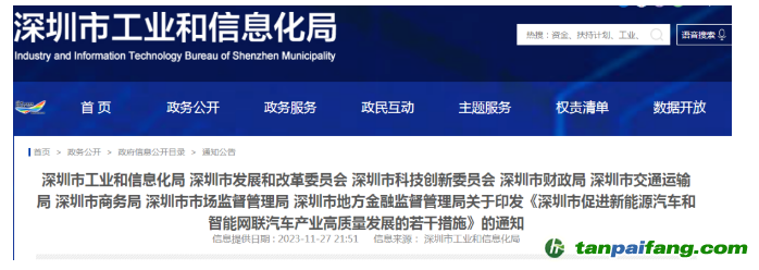 深圳市工業(yè)和信息化局 深圳市發(fā)展和改革委員會(huì) 深圳市科技創(chuàng)新委員會(huì) 深圳市財(cái)政局 深圳市交通運(yùn)輸局 深圳市商務(wù)局 深圳市市場(chǎng)監(jiān)督管理局 深圳市地方金融監(jiān)督管理局關(guān)于印發(fā)《深圳市促進(jìn)新能源汽車和智能網(wǎng)聯(lián)汽車產(chǎn)業(yè)高質(zhì)量發(fā)展的若干措施》的通知 內(nèi).容.來(lái).自:中`國(guó)*碳-排*放*交*易^網(wǎng) t a npai fa ng.com