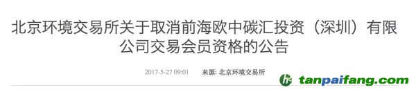 第二:歐中碳匯的交易會員資格被取消。 本@文$內(nèi).容.來.自:中`國`碳`排*放^交*易^網(wǎng) t a np ai fan g.c om