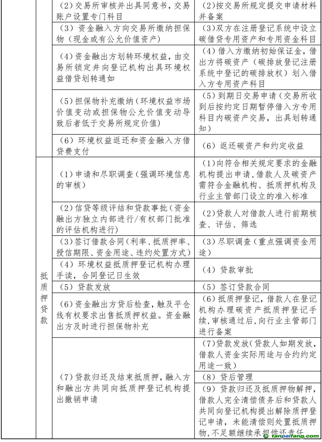 表1 《碳金融產(chǎn)品》和《環(huán)境權(quán)益融資工具》中融資工具和實(shí)施流程的對比 本文`內(nèi)-容-來-自;中_國_碳_交^易=網(wǎng) tan pa i fa ng . c om