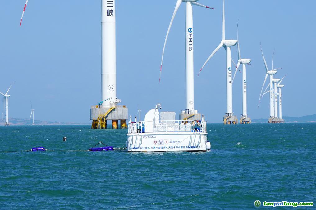 “東福一號(hào)”海上風(fēng)電海水無(wú)淡化原位直接電解制氫平臺(tái)在福清興化灣開(kāi)展真實(shí)海洋環(huán)境下的運(yùn)行試驗(yàn)。(5月27日攝,受訪單位供圖) 內(nèi).容.來(lái).自:中`國(guó)`碳#排*放*交*易^網(wǎng) t a np ai f an g.com
